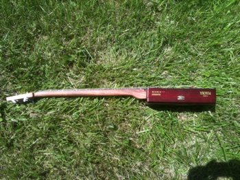 This guitar is really a joy to play, and was just as much fun to build! The neck is solid bubinga, which is a beautiful, durable, very hard wood. So durable, in fact, that bubinga guitar necks can be left unfinished, which gives it an naturally smooth, almost unbelievable feel. **SOLD**